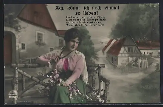 Foto-AK R & K / L Nr.8825/6: Junge hübsche Frau mit Blumenkranz-Ach. könnt ich noch einmal so lieben !