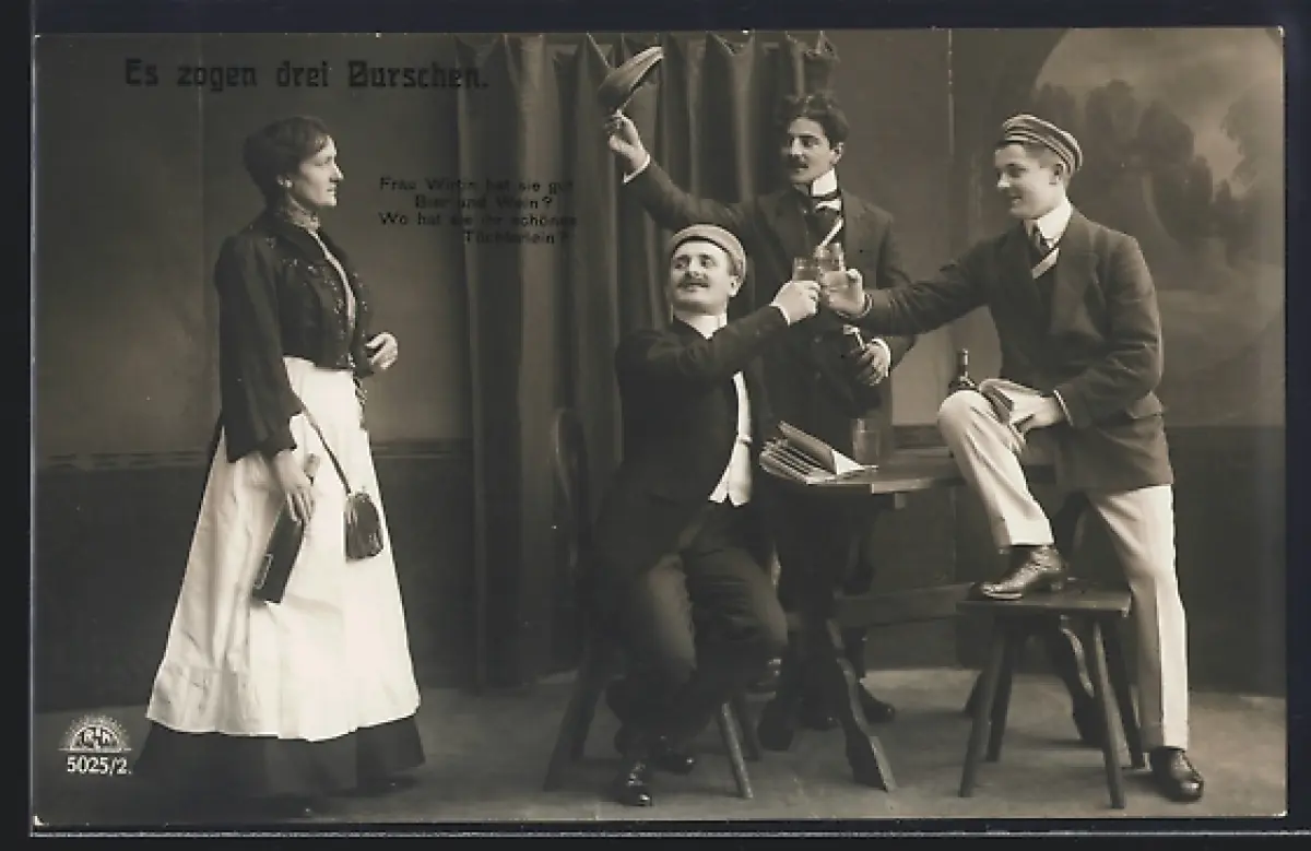 Foto-AK R & K Nr. 5025/2: Studenten feiern und trinken