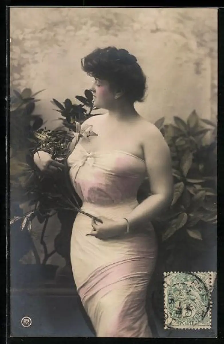 Foto-AK RPH NR 348-4530: Frau im rosa Kleid hält einen Zweig in den Händen