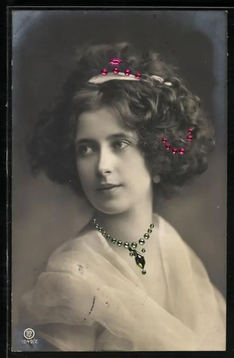 Foto-AK RPH Nr. 1949/2: Porträt einer Dame mit glitzernden Elementen verziert