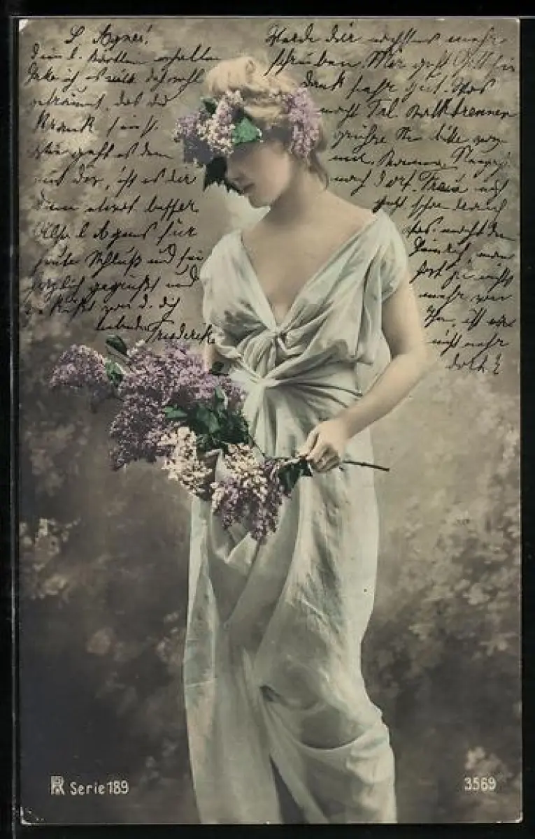 Foto-AK RPH Nr. 3569: Elegante junge Frau mit Fliederblüten