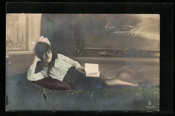 Foto-AK RPH Nr. 4312 /1: Ein süsser Käfer, Dame liest ein Buch