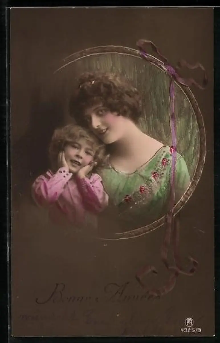 Foto-AK RPH Nr. 4325/3: Frau und Kind in rundem Rahmen