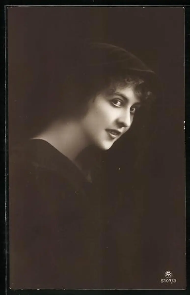 Foto-AK RPH Nr. 5107-3: In schwarz gekleidete Frau vor dunklem Hintergrund
