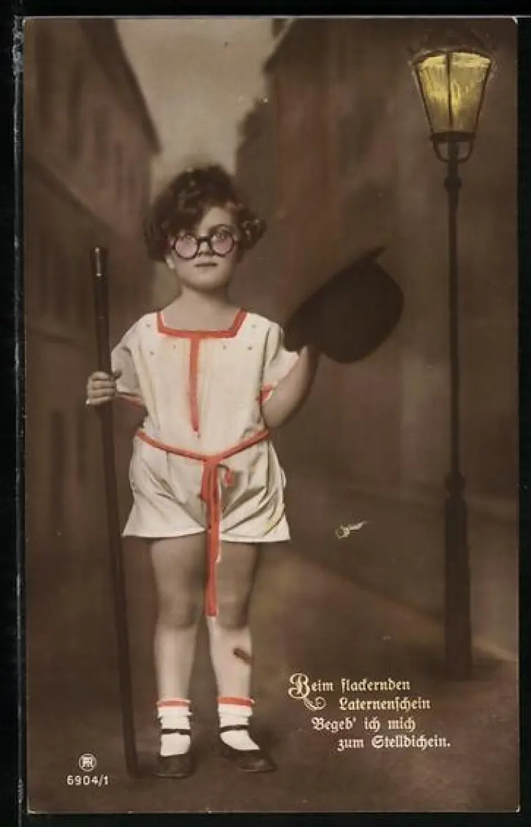 Foto-AK RPH Nr. 6904/1: Kleines Kind mit Brille, Hut und Gehstock