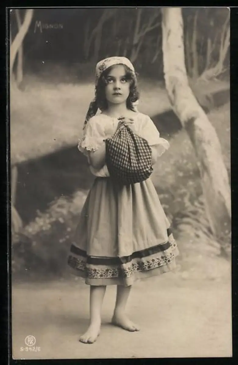 Foto-AK RPH Nr. S-942 / 6: Mignon, niedliches Mädchen mit Kopftuch im Wald