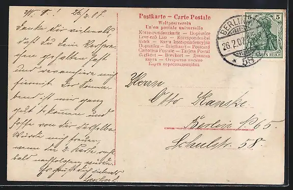 alte Ansichtskarte, gelaufen 1907, guter Zustand
