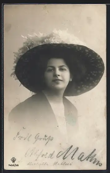 Foto-AK RPH SBW: Junge Frau in Hut mit weiter Krempe