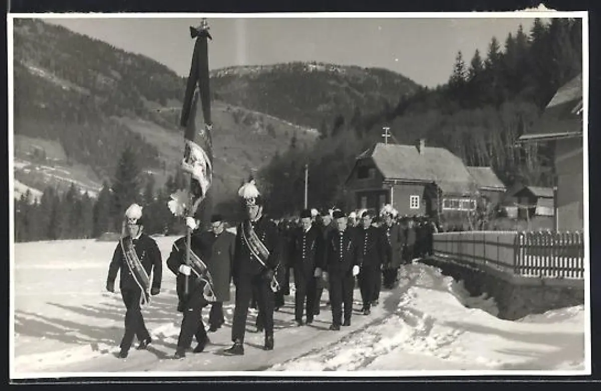 Foto-AK Radenthein, Beerdigung von Herrn Meierbrugger in der Patergasse im Winter