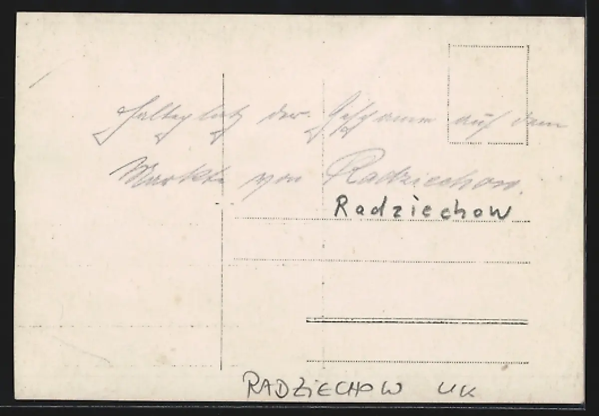 Foto-AK Radziechow, Soldaten auf dem Markt, Nachschubkolonne