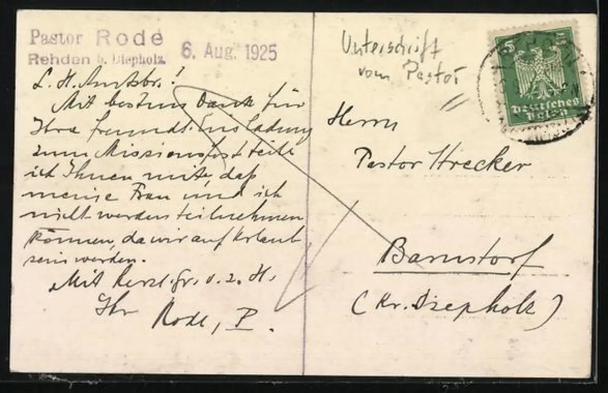 Foto-AK Rehden b. Diepholz, Pastor Rode vor seinem Haus