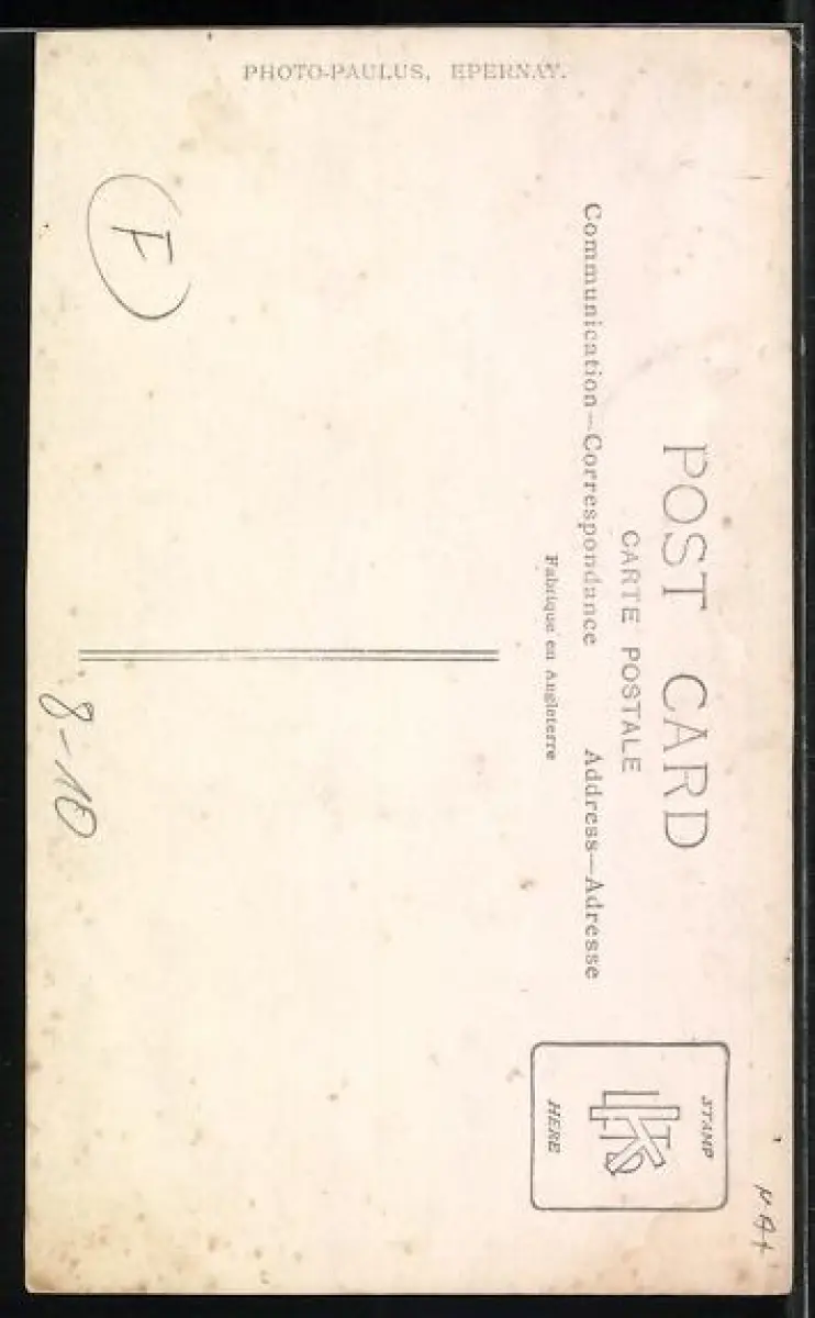 Personenbezogene Daten auf der Rückseite der Karte wurden durch blauen Textmarker unkenntlich gemacht. Die blauen Stellen sind auf die Vorderseite durchgeweicht und wirken sich negativ auf das Postkartenfoto aus