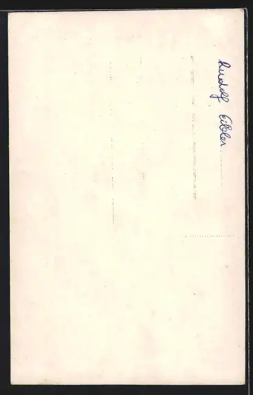 Personenbezogene Daten auf der Rückseite der Karte wurden durch blauen Textmarker unkenntlich gemacht. Die blauen Stellen sind auf die Vorderseite durchgeweicht und wirken sich negativ auf das Postkartenfoto aus