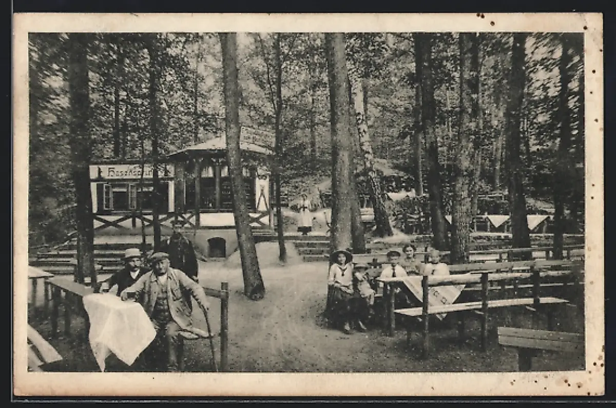 Foto-AK Salzgitter, Gaststätte Hasenspring mit Gästen