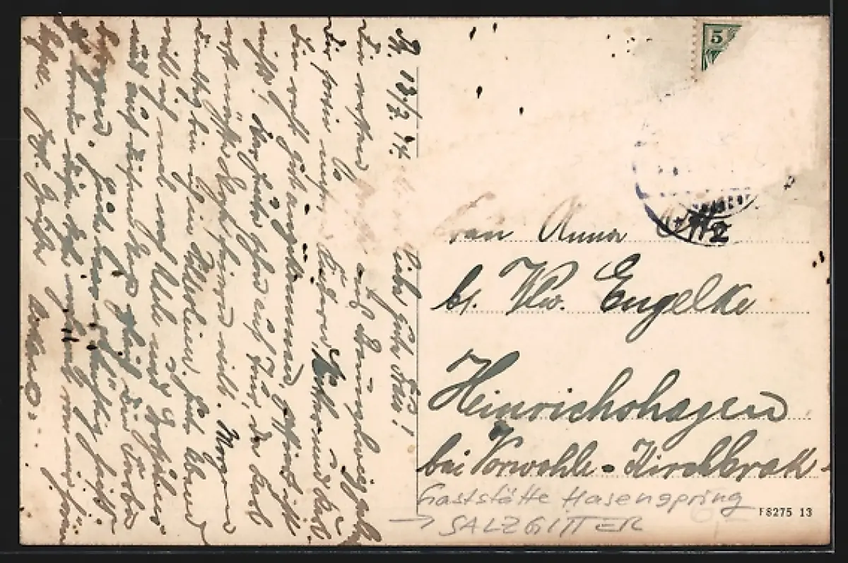 alte Ansichtskarte, gelaufen, Briefmarke entfernt, rückseitig Oberflächenschaden, guter Zustand