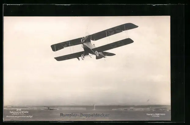 Foto-AK Sanke Nr. 271: Rumpler-Doppeldecker-Flugzeug beim Starten