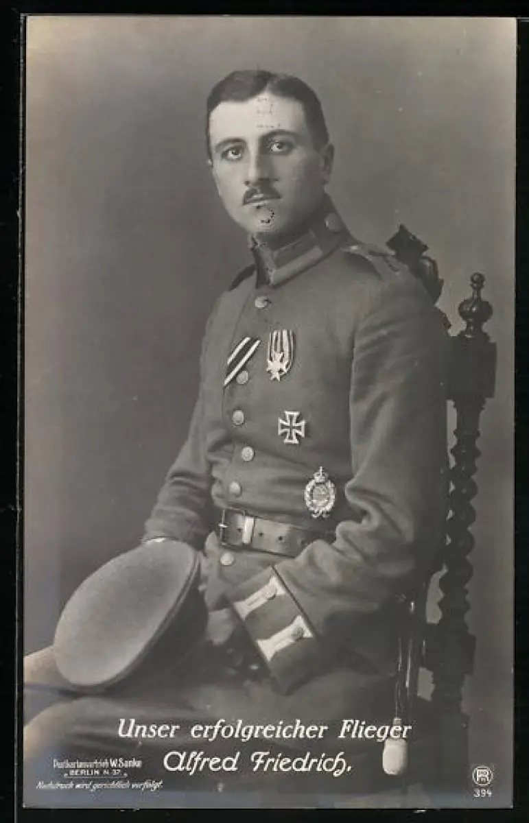 Foto-AK Sanke Nr. 394: Unser erfolgreicher Flieger Alfred Friedrich in Uniform