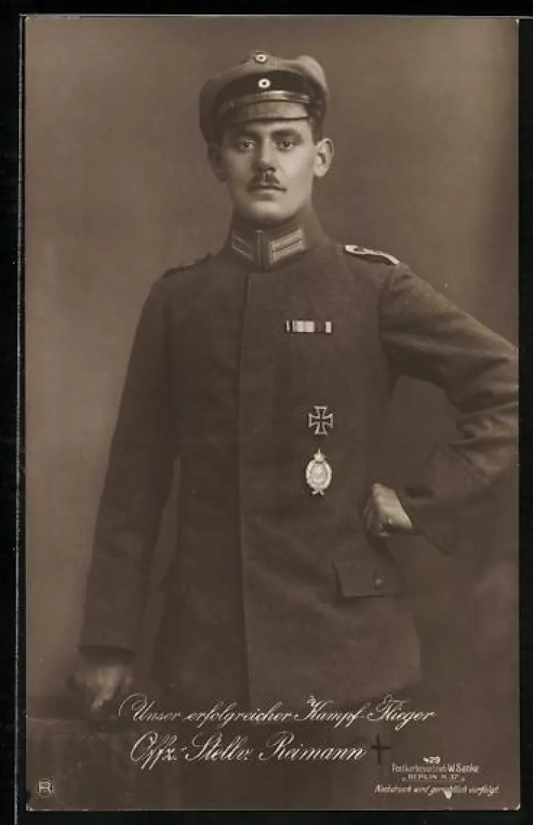 Foto-AK Sanke Nr. 429: Offz.-Stellv. Reimann in Uniform mit Flugzeugführerabzeichen und EK I