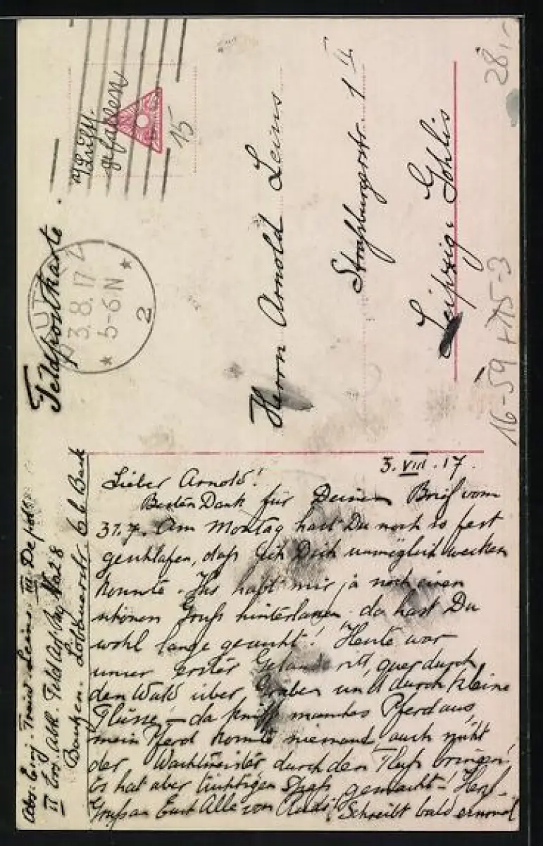 gelaufen 1917, minimaler Einriss re. unten, guter Zustand
