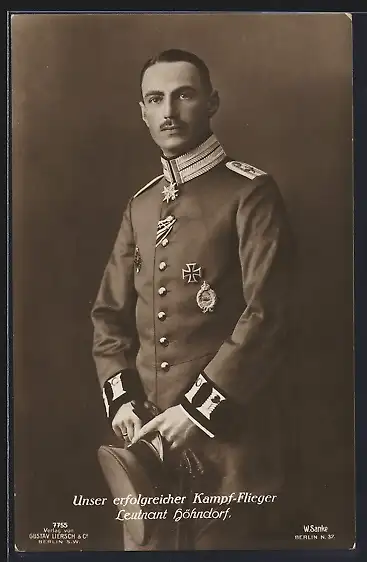 Foto-AK Sanke Nr. 7755: Kampf-Flieger Leutnant Walter Höhndorf in Uniform mit Eisernem Kreuz und Orden