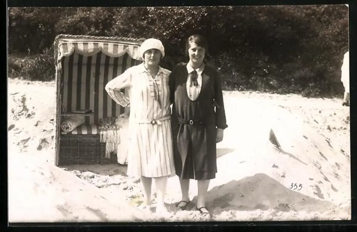 Foto-AK Sellin /Rügen, Zwei Frauen am Strandkorb