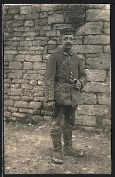 Foto-AK Soldat in Feldgrau Garde Uniform mit Krätzchen