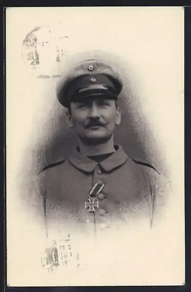 Foto-AK Soldat in Uniform mit Schnurrbart, Eisernes Kreuz