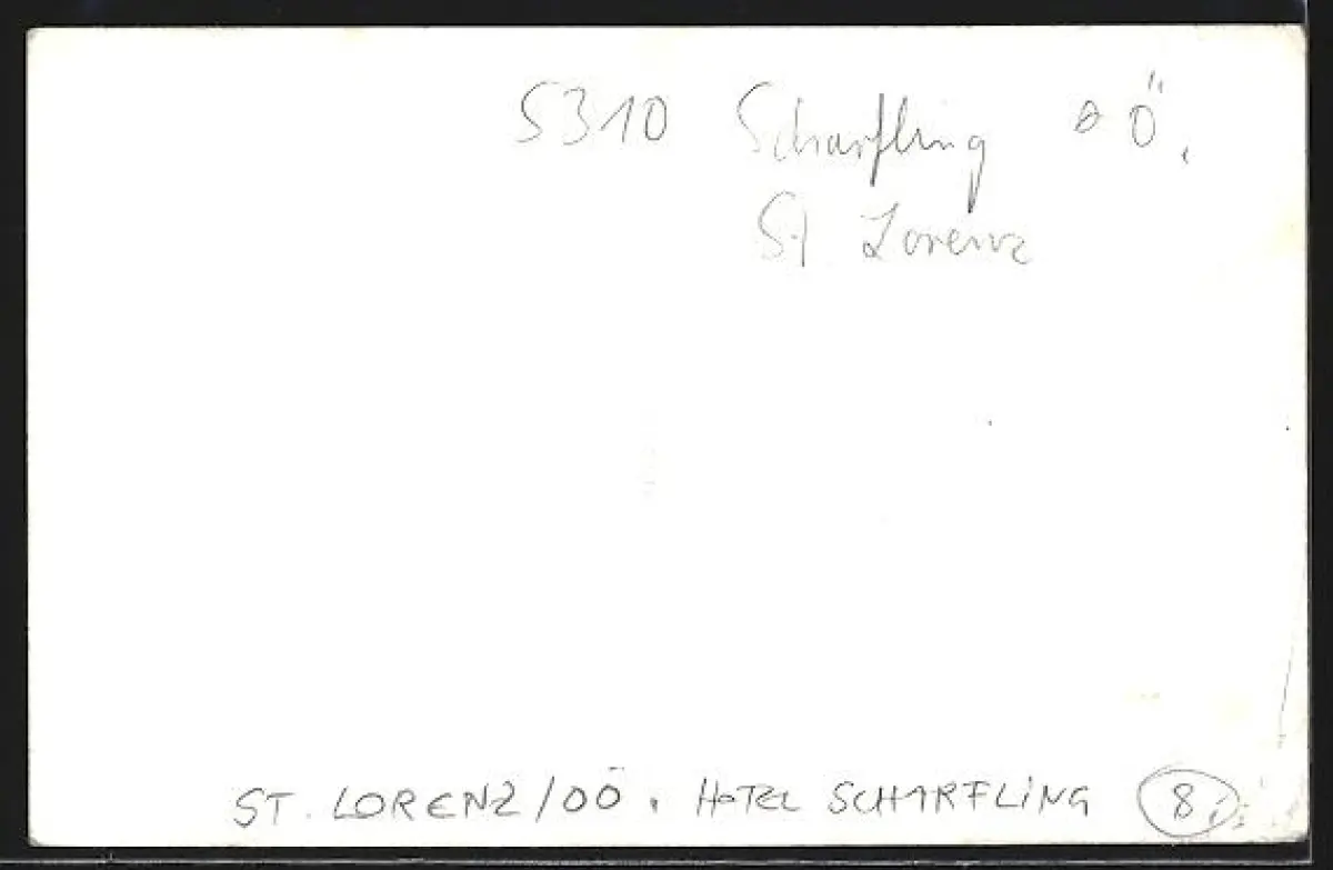Foto-AK St. Lorenz /O. Ö., Hotel Scharfling mit Garten