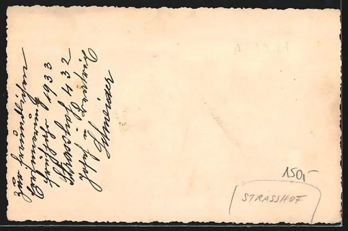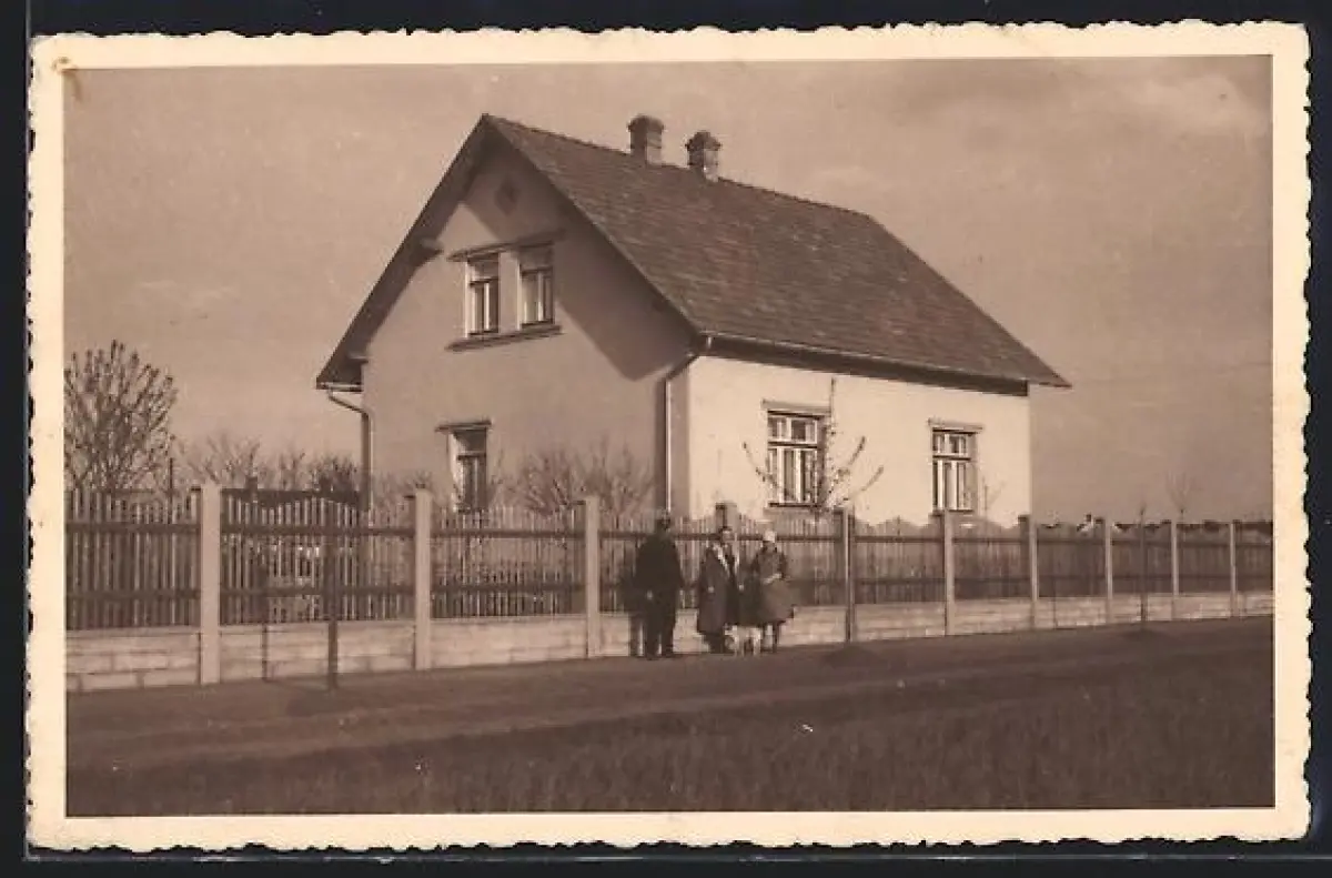 Foto-AK Strasshof an der Nordbahn, Spaziergänger mit kleinem Hund