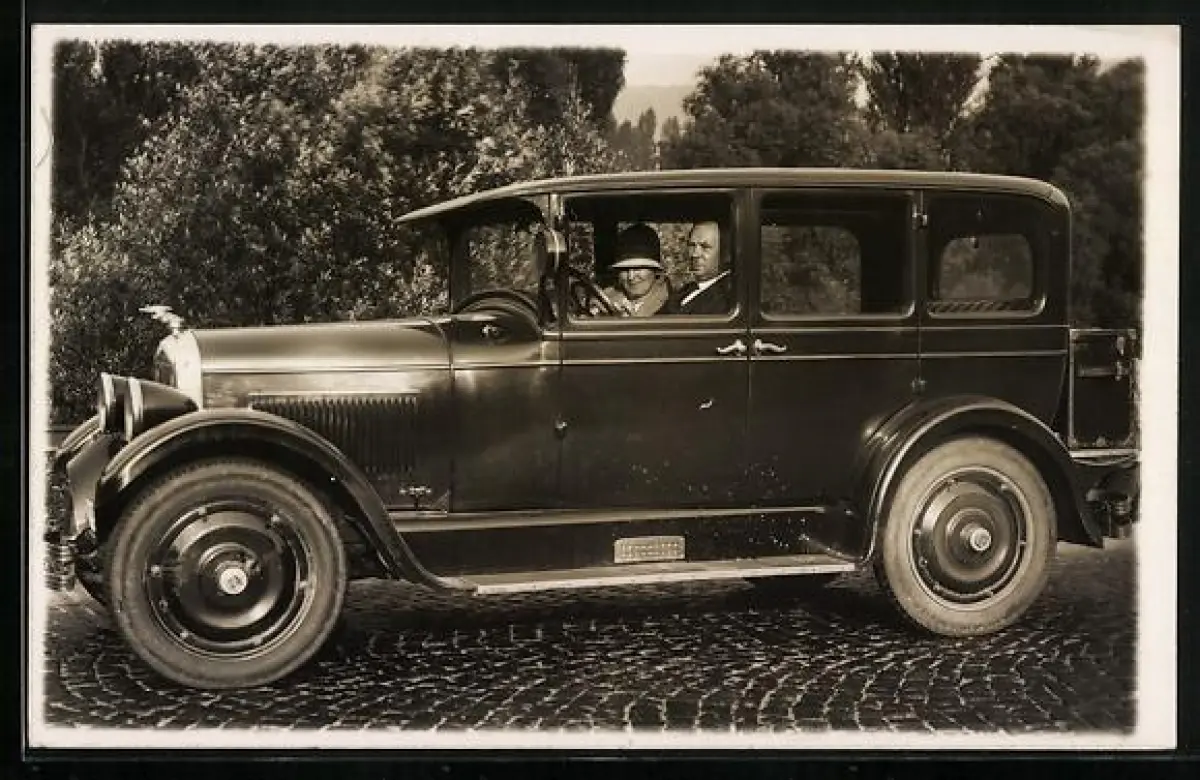 Foto-AK Studebaker Big X, Paar bei der Fahrt ins Grüne
