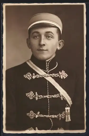Foto-AK Student in Uniform mit Schirmmütze, studentische Szene