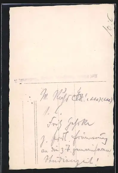 Personenbezogene Daten auf der Rückseite der Karte wurden durch blauen Textmarker unkenntlich gemacht. Die blauen Stellen sind auf die Vorderseite durchgeweicht und wirken sich negativ auf das Postkartenfoto aus