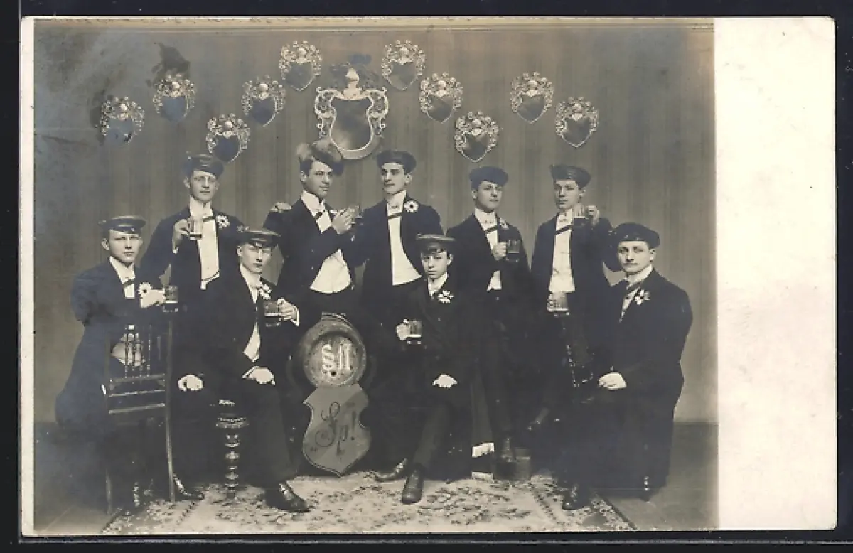 Foto-AK Studenten posieren mit ihrem Wappen