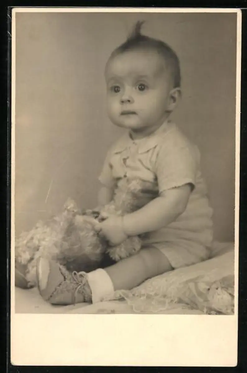 Foto-AK Süsses Kleinkind mit einem Teddy