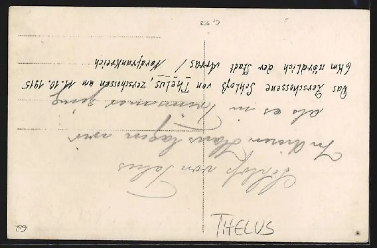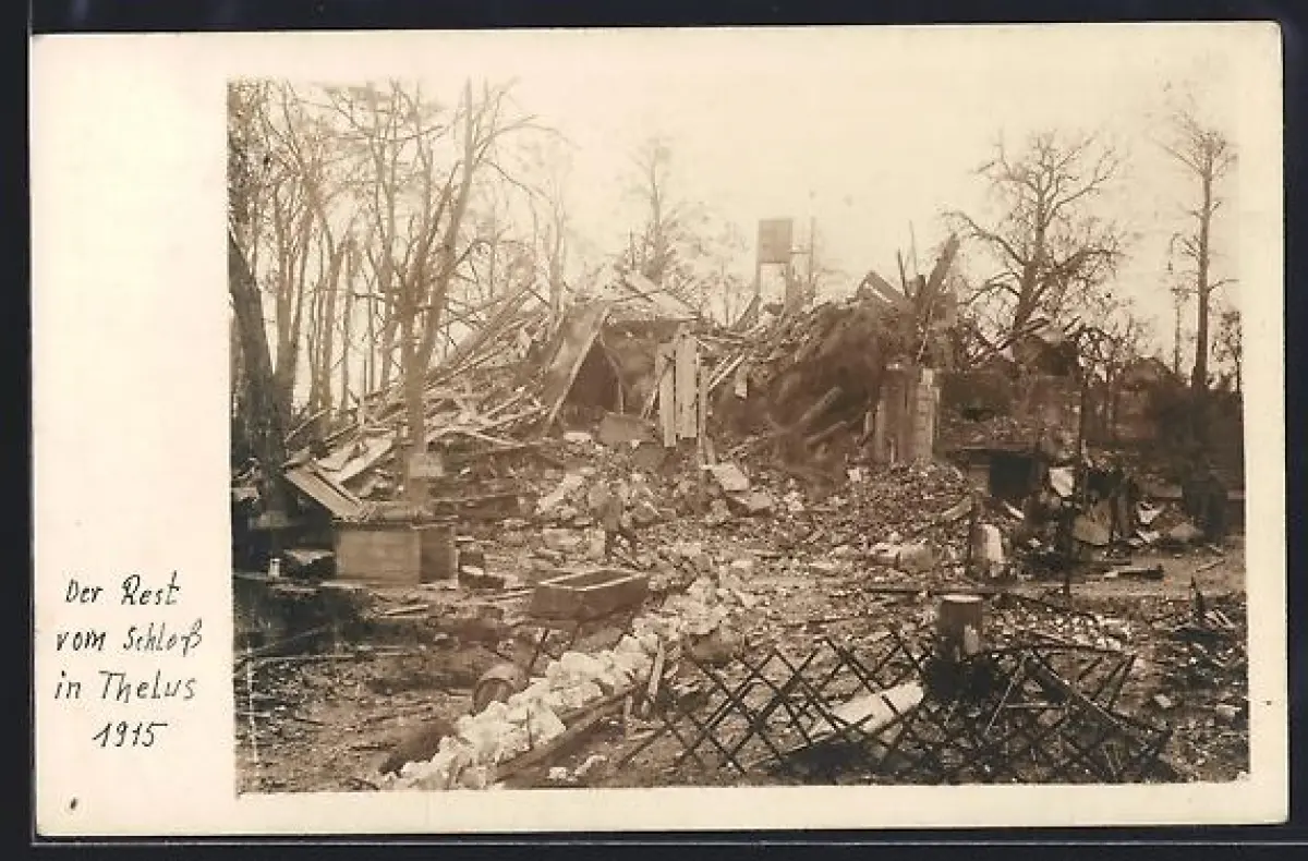 Foto-AK Thélus, Ruines du château après la destruction en 1915