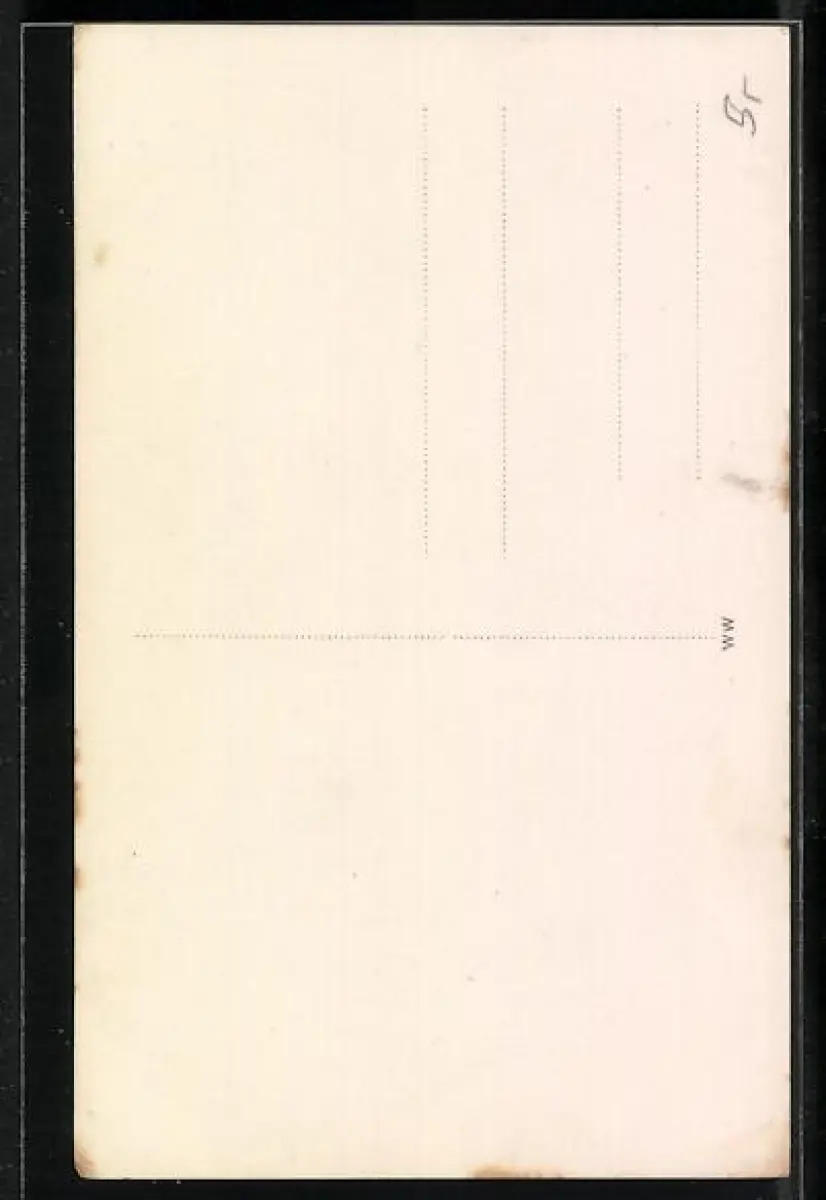 Personenbezogene Daten auf der Rückseite der Karte wurden durch blauen Textmarker unkenntlich gemacht. Die blauen Stellen sind auf die Vorderseite durchgeweicht und wirken sich negativ auf das Postkartenfoto aus