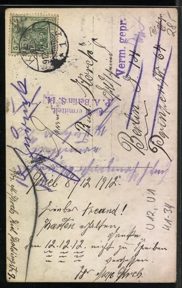 alte Ansichtskarte, gelaufen 1912, Eckknick re. oben, Stempelspur, guter Zustand