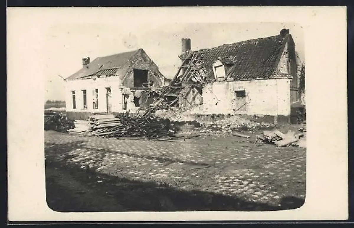 Foto-AK Vimy, Maisons endommagées après des bombardements