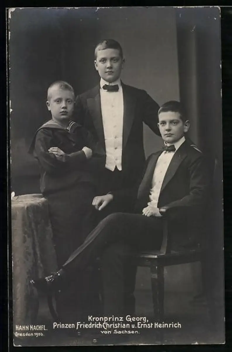 Foto-AK Walter Hahn, Nachfolger: Kronprinz Georg u. Prinzen Friedrich Christian u. Ernst Heinrich von Sachsen