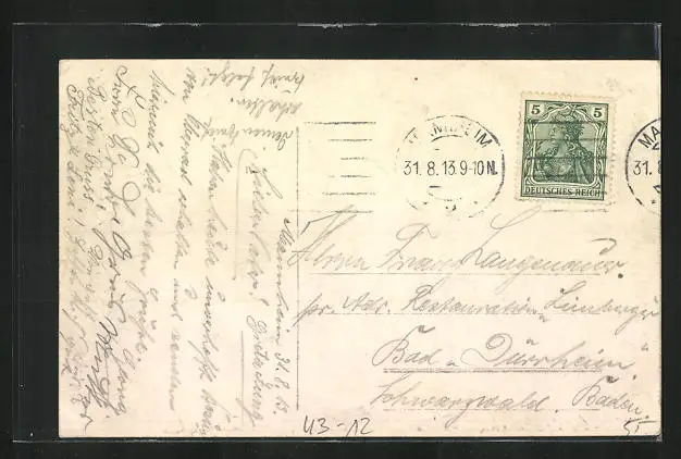 gelaufen 1913, Eckknick re. unten, guter Zustand