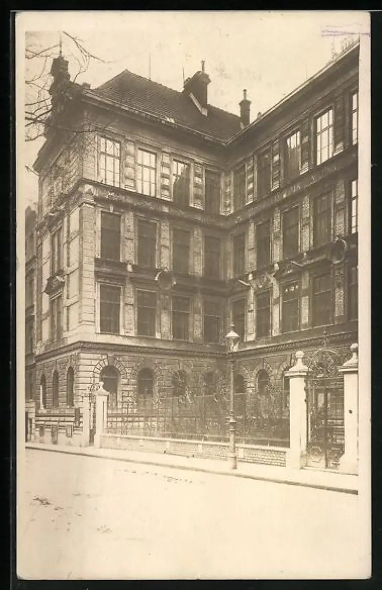 Foto-AK Wien, Geblergasse mit Schule