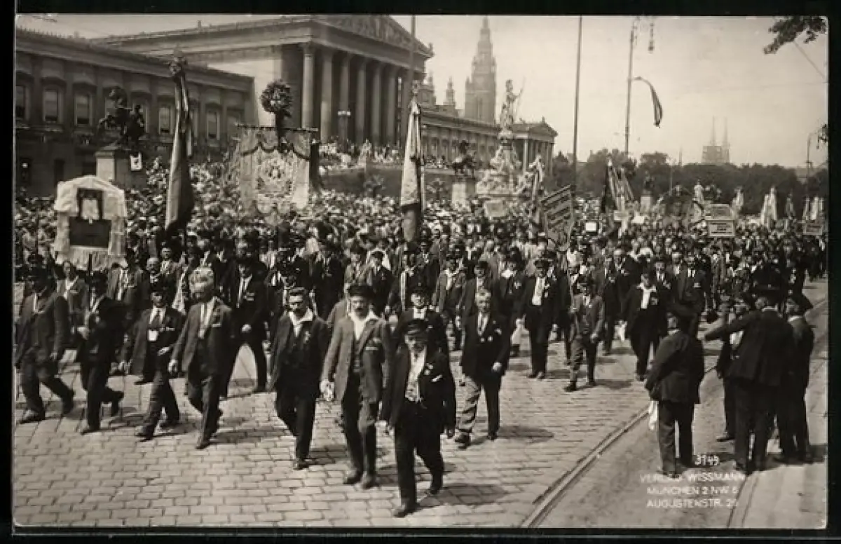 Foto-AK Wien, X. Sängerbundesfest 1928, Festumzug mit Zuschauern