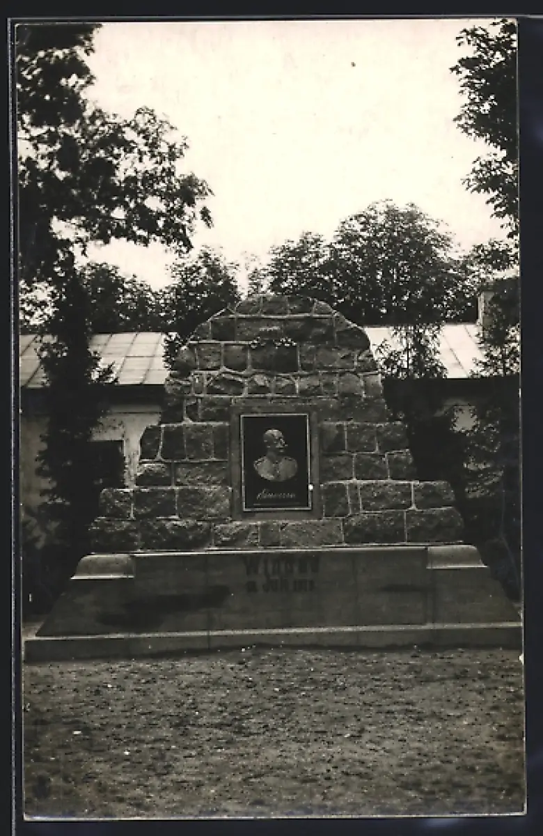 Foto-AK Windau, Denkmal General von Schwerin, 1915