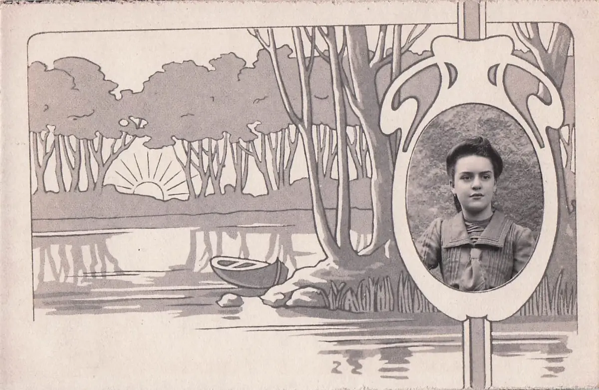 Foto-AK einer jungen frau Bootsanleger am Ufer, Passepartout -798712