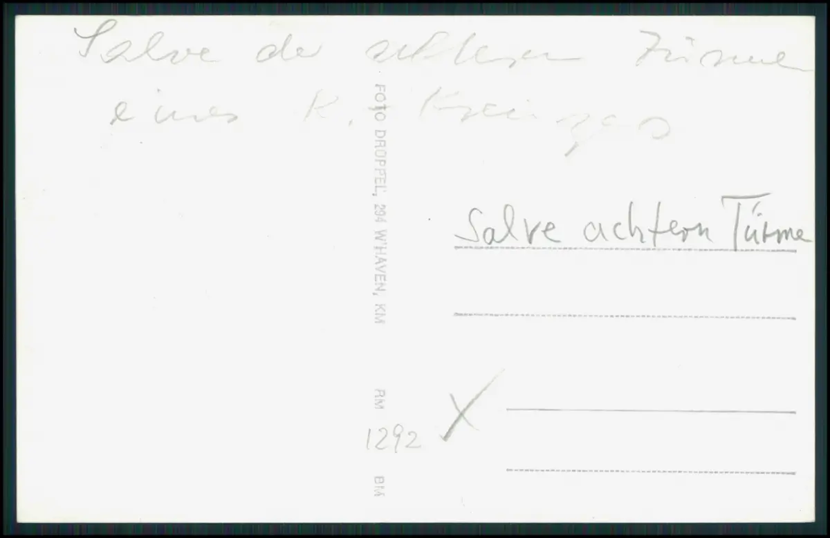 Auf der Rückseite befindet sich eine Beschriftung sowie der Aufdruck 'Foto Drüppel, Wilhelmshaven'.