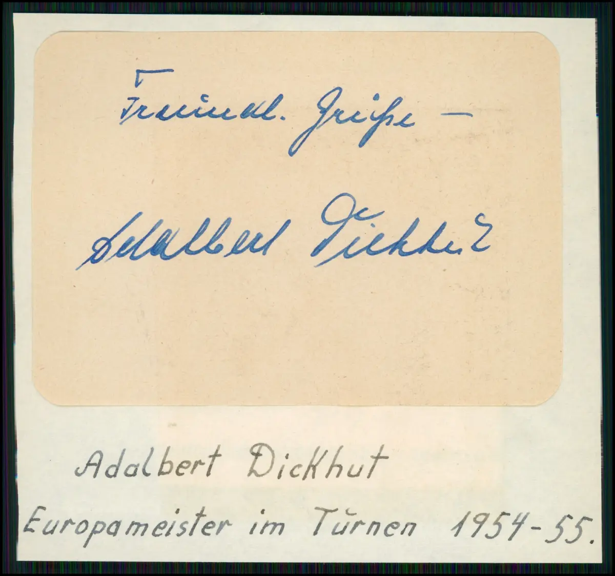 Foto Adalbert Dickhut handsigniert Gerätturner Nationalmannschaft Autogramm 1954
