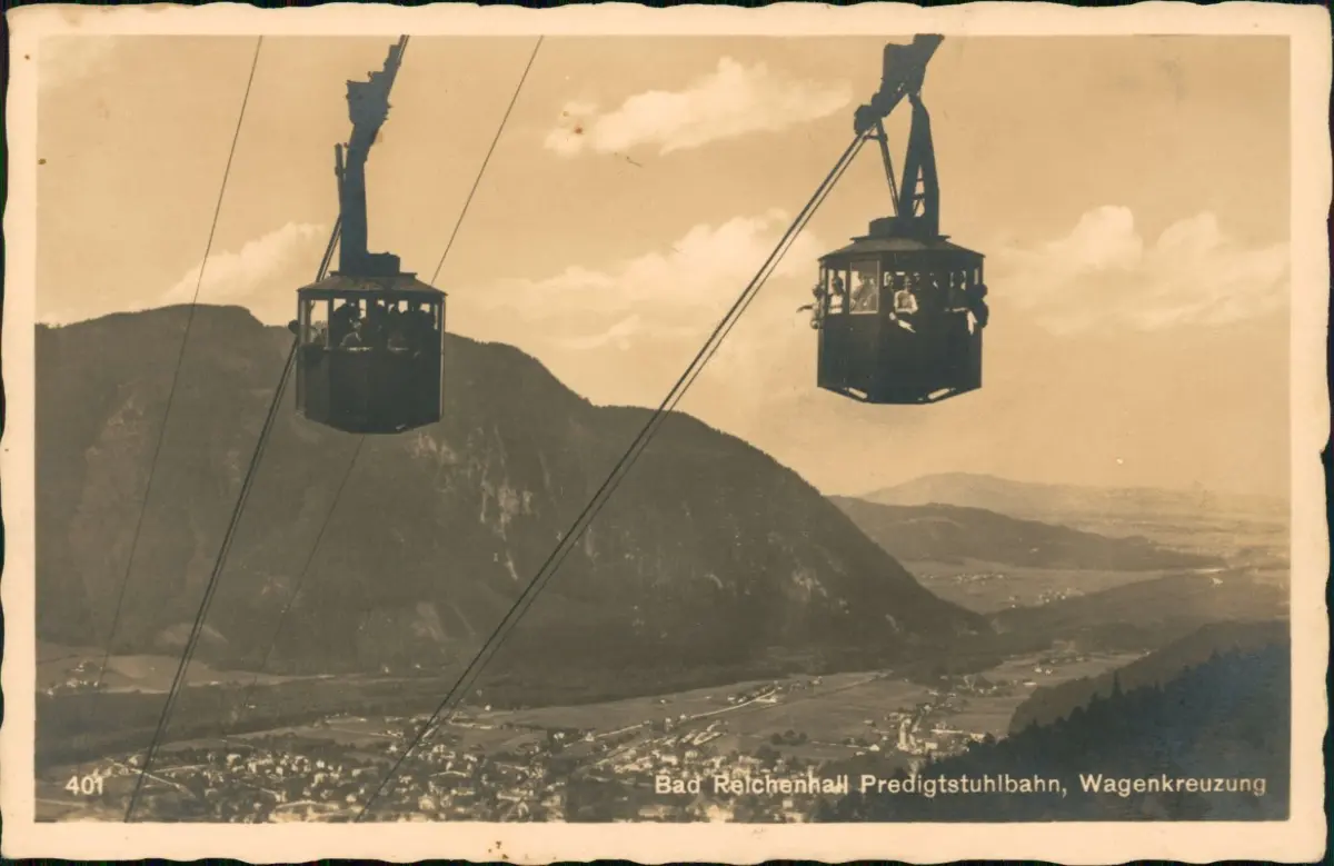 Foto Ansichtskarte Bad Reichenhall Predigtstuhlbahn, Wagenkreuzung 1940