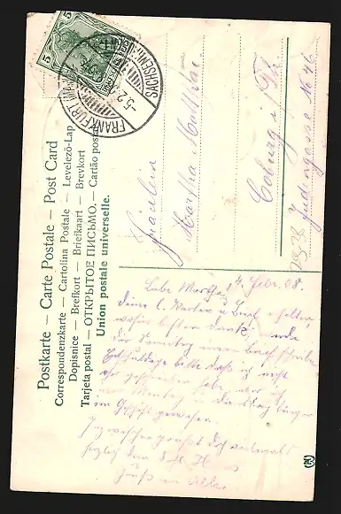 alte Ansichtskarte, gelaufen 1908, guter Zustand