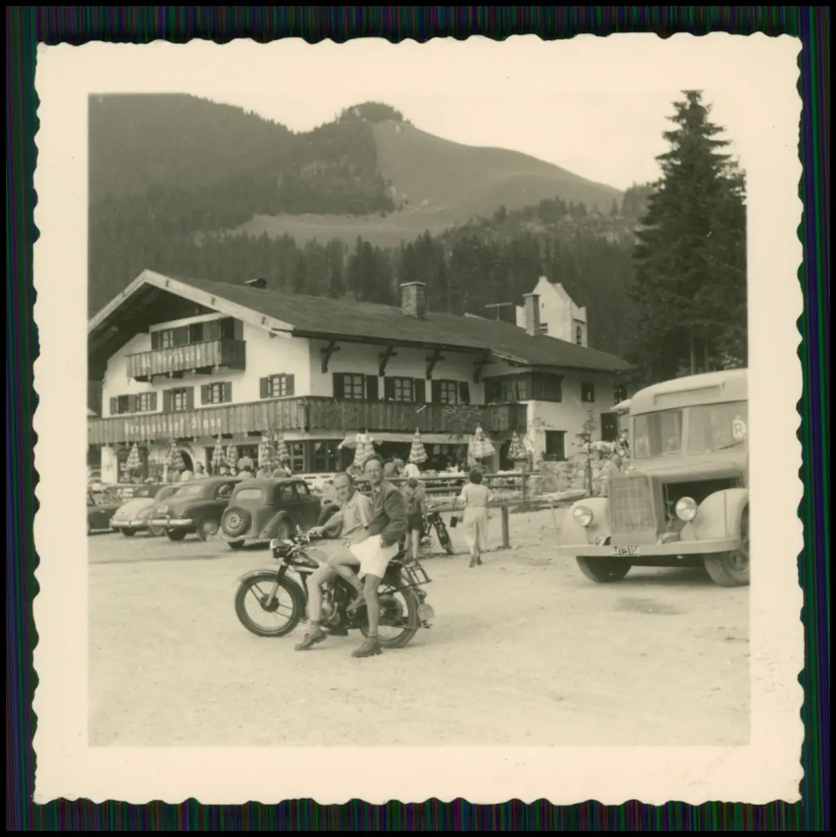 Foto - Spitzingsee Schliersee Motorrad vor Berggasthof Bayern Alpen 1952