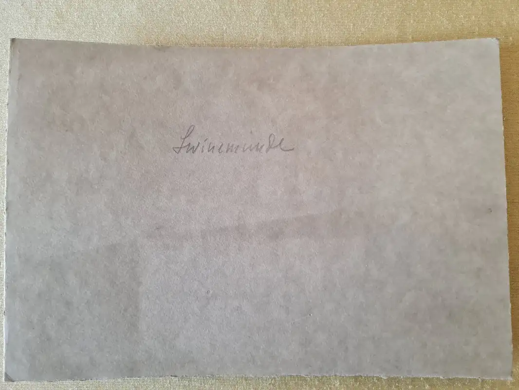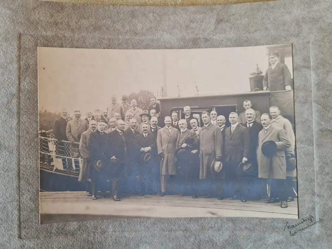 Foto Swinemünde Świnoujście Gruppenbild vor Boot Pommern1928